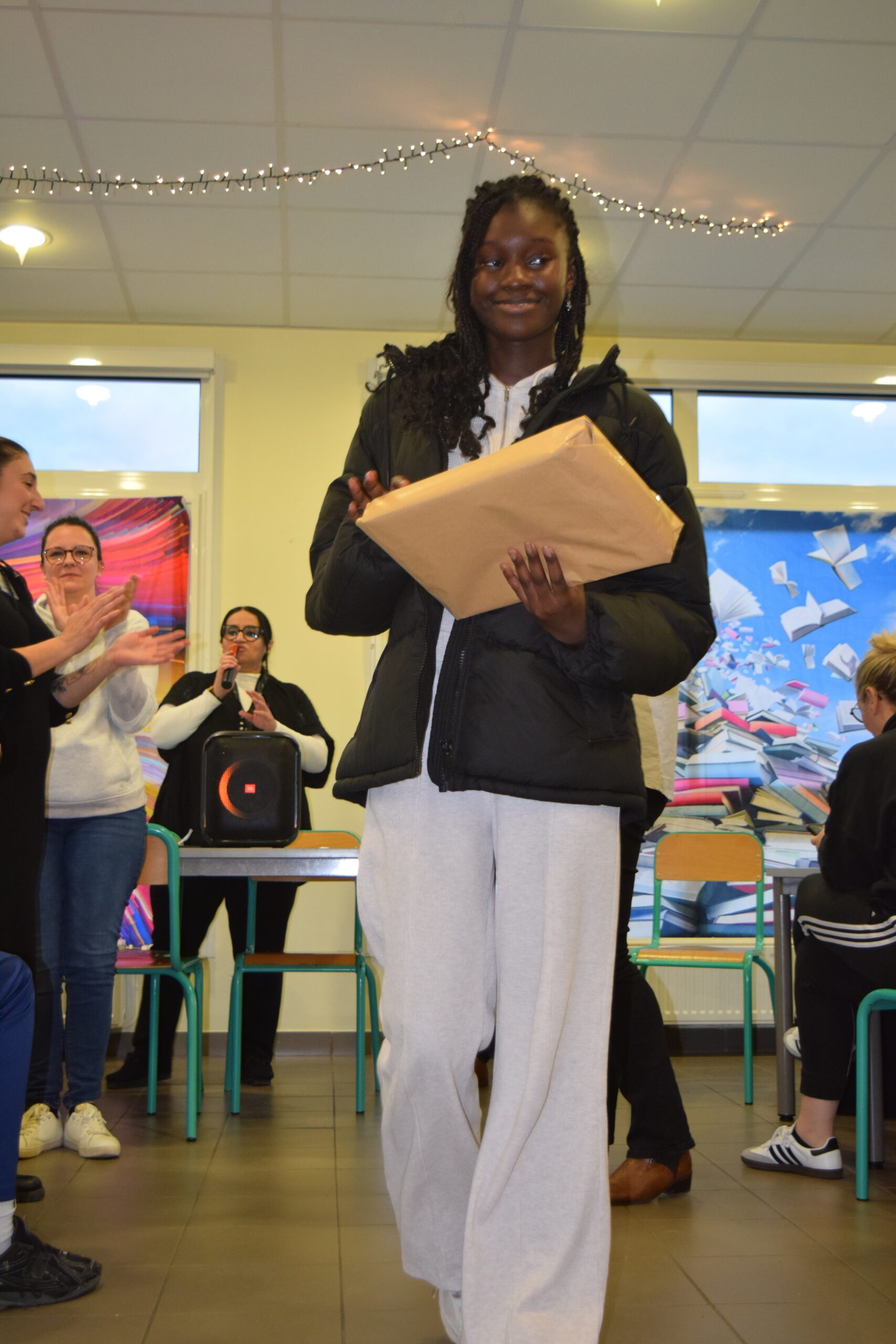 La plus belle poésie : Mendy Pascaline, élève de 3ème au collège Simone Signoret qui a remporté kit d’écriture.