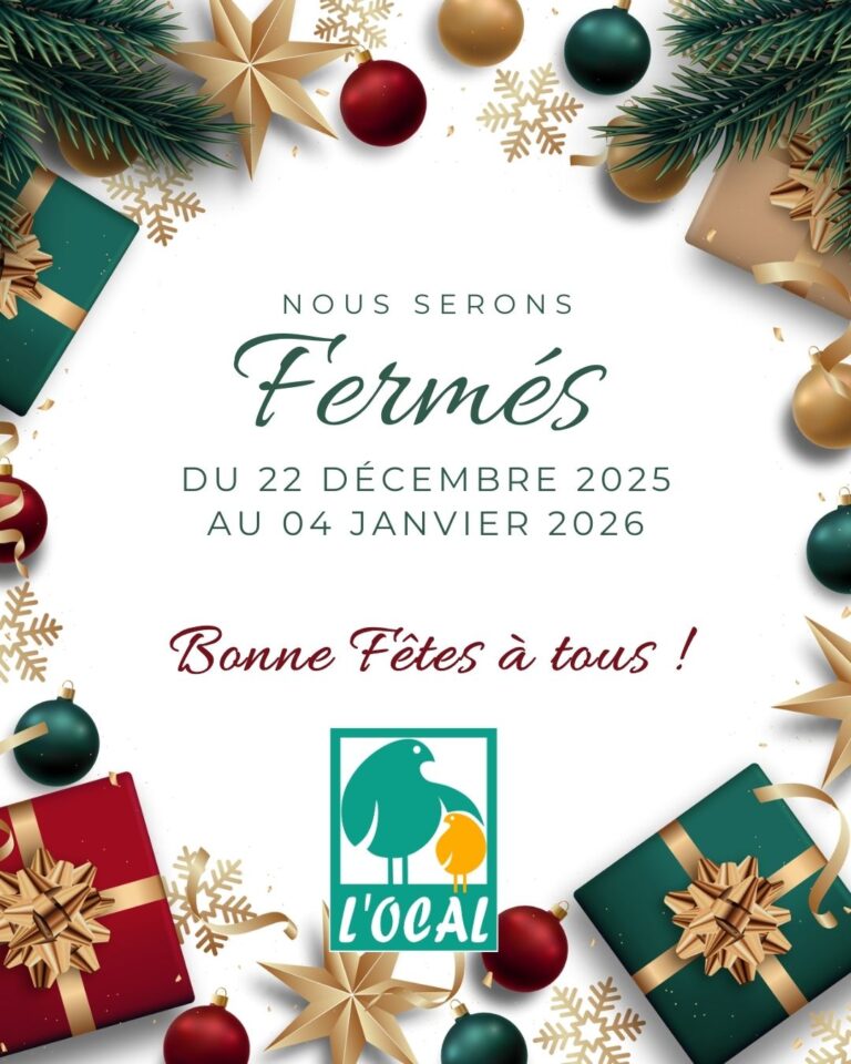 Fermeture annuelle décembre 19, 2025 L'OCAL se met en mode hibernation ! Comme chaque année, l’ensemble des structures de L’OCAL seront fermées pendant les vacances de fin d’année. Nous vous souhaitons de joyeuses fêtes… et nous vous donnons rendez-vous l’année prochaine.