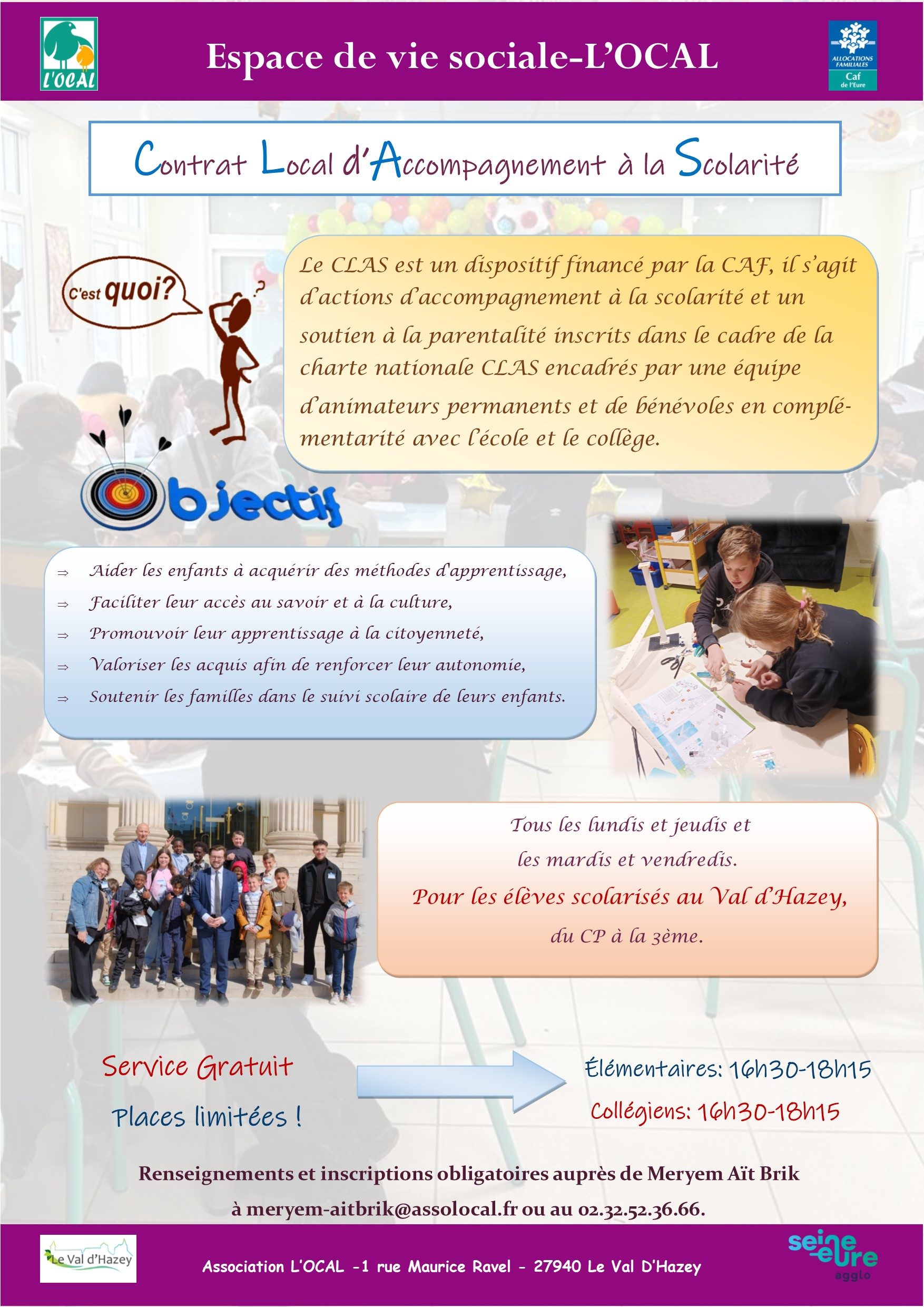 L’Espace de Vie Sociale du Val d’Hazey met en place le Contrat Local d’Accompagnement à la Scolarité (CLAS), ouvert aux élèves du primaire et du collège.
